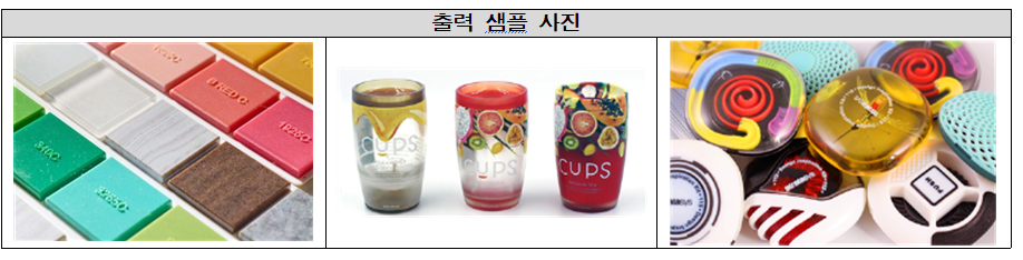 컬러 3D프린트 | PolyJet (잉크젯과 UV광경화 혼합 출력) | 주요특징 | ·풀컬러 출력 가능(지정된 색상, 패턴, 글자 등 출력 가능) |