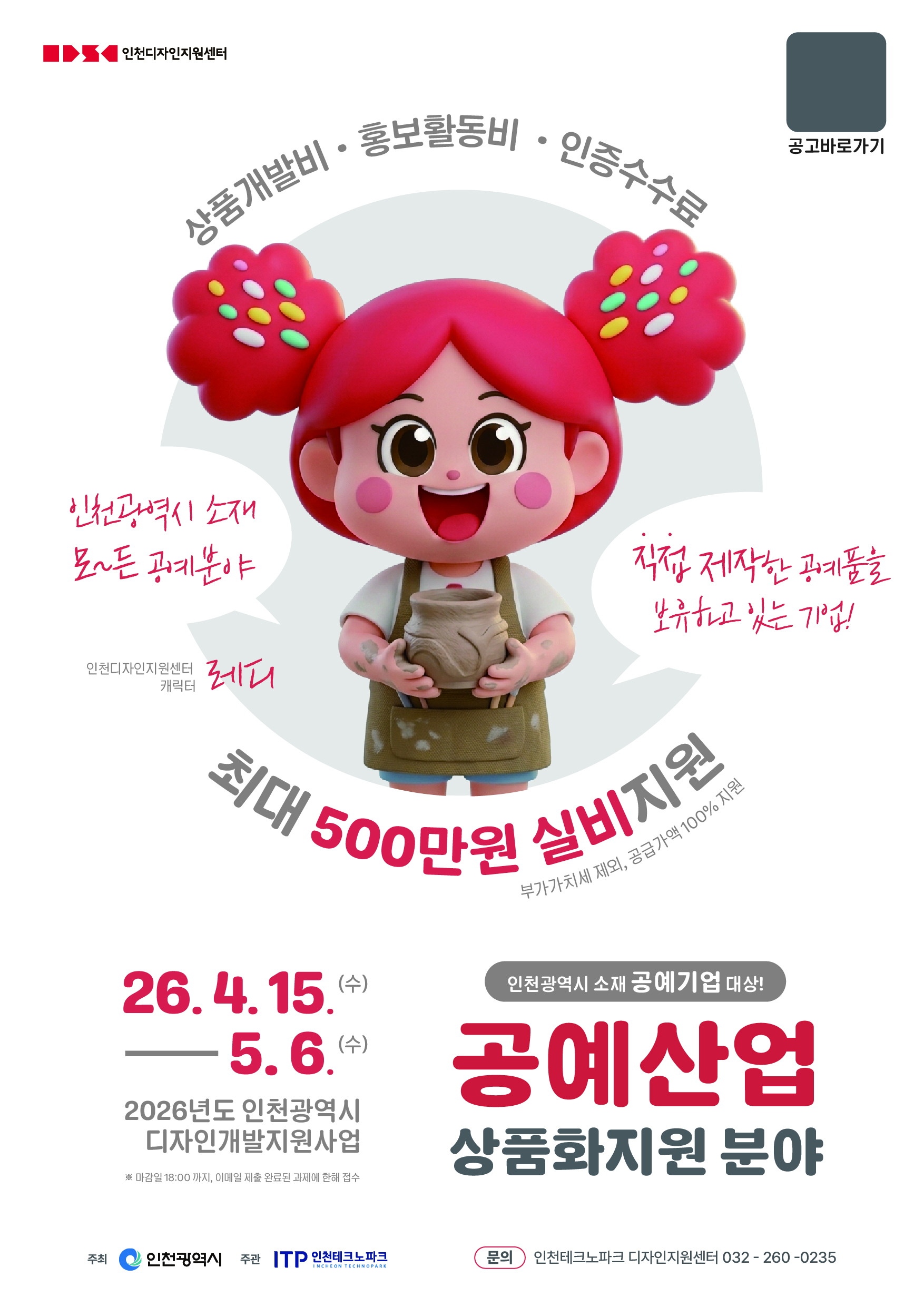 ■ 문의처 : 인천테크노파크 인천디자인지원센터 공예사업 담당 032-260-0235