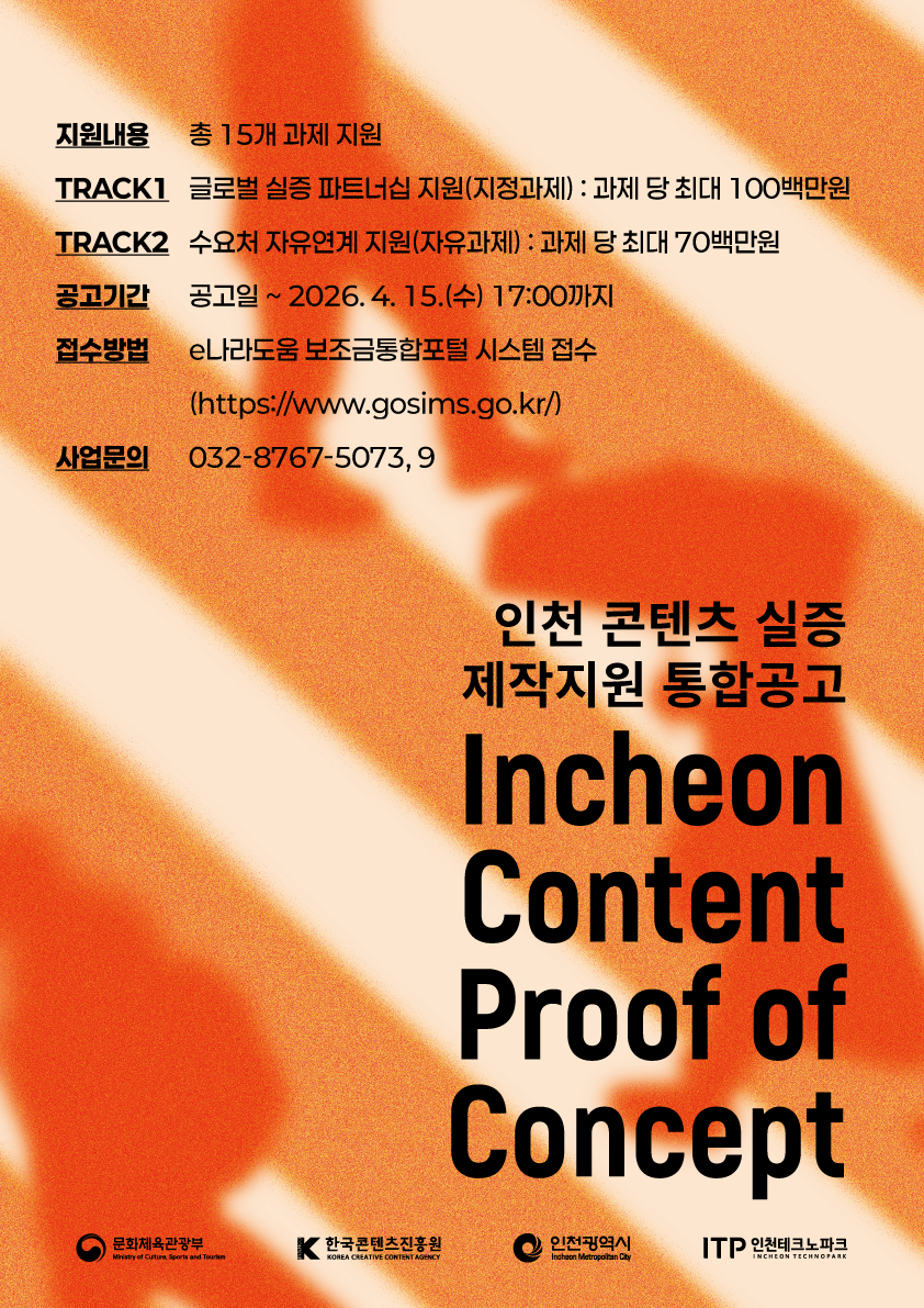 사. 문의처: 인천테크노파크 콘텐츠기업지원센터 032-876-5073(자유), 5079(지정)