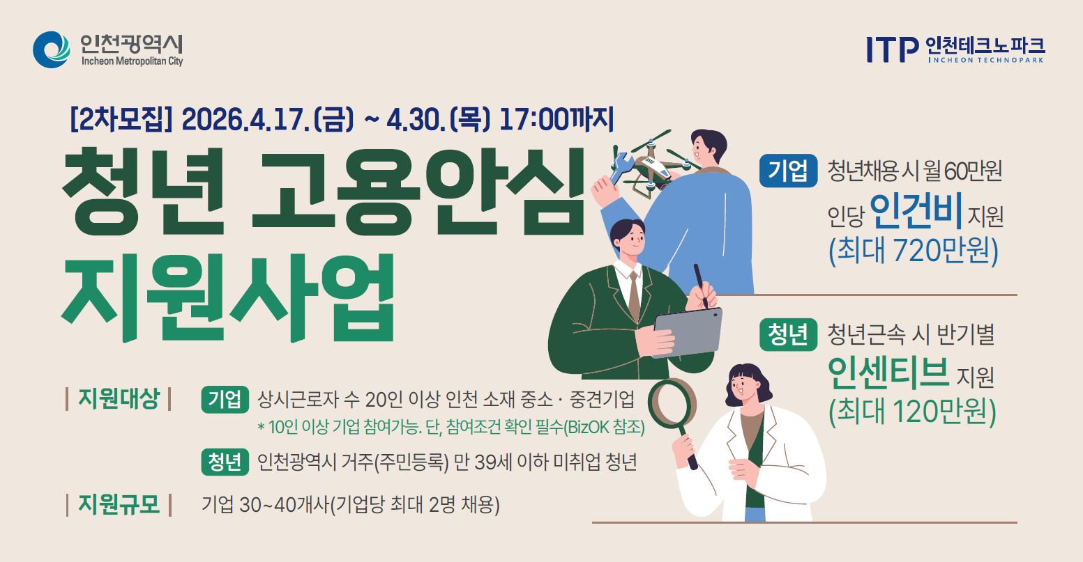 2026년 인천청년 고용안심 지원사업 참여기업 모집 공고(2차)