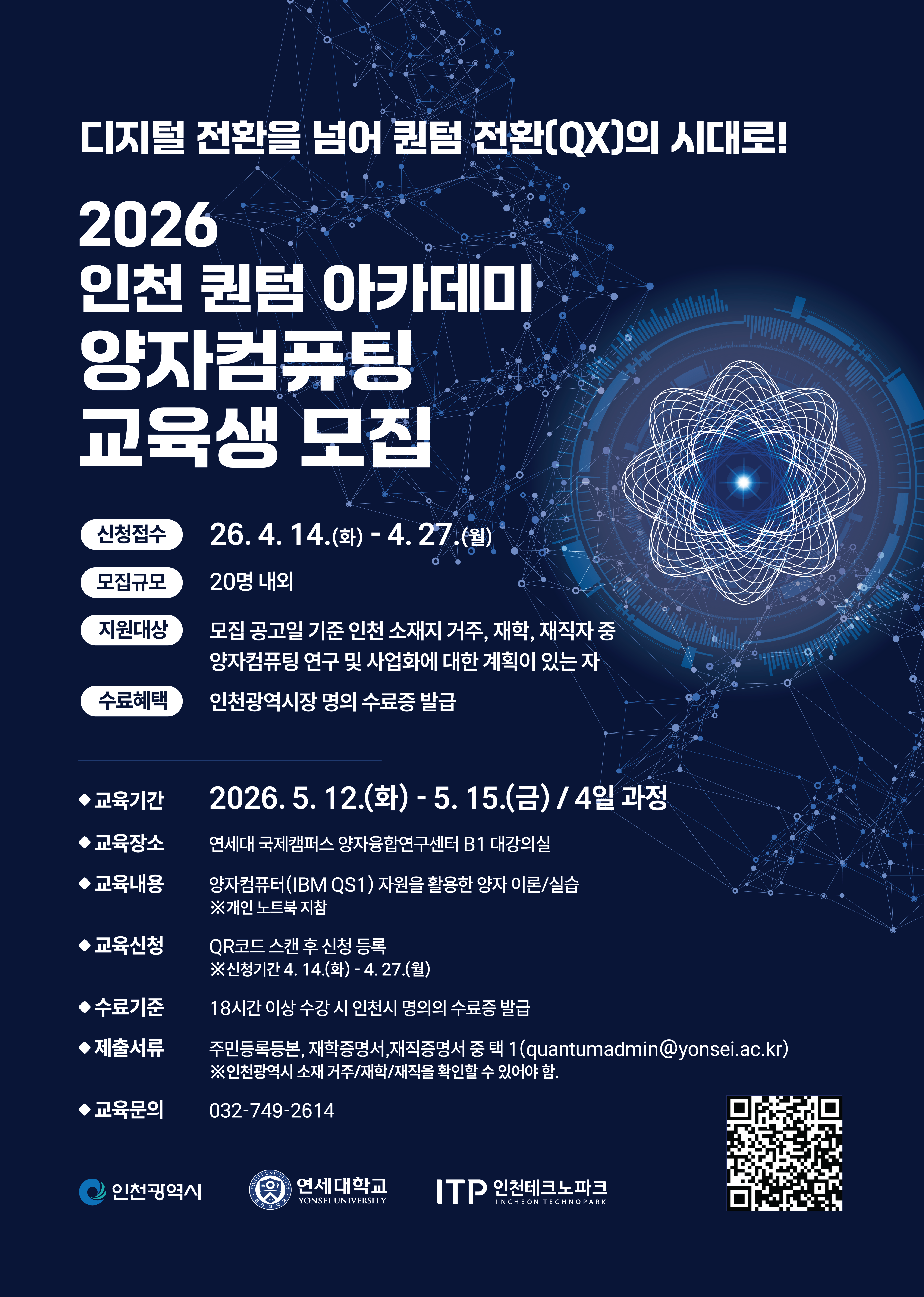 2026 인천 퀀텀 아카데미 양자컴퓨팅 교육생 모집